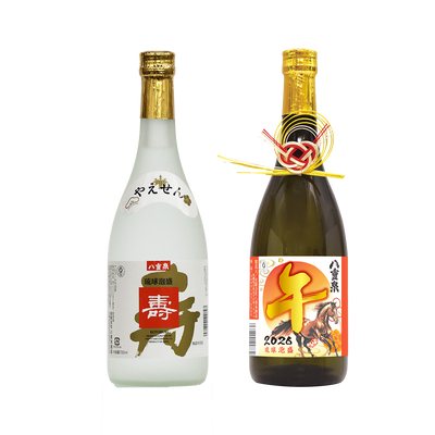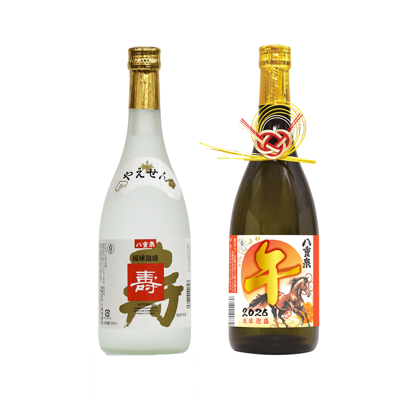 なめらかな口当たりとふくよかな香りの泡盛「八重泉」。御目出度い席に欠かせない、お正月らしい華やかなセットです。