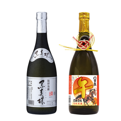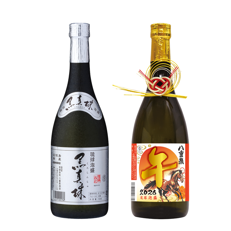 芳醇でコクのある味わいが県内外からも人気の泡盛「黒真珠」と なめらかな口当たりとふくよかな香りの泡盛「八重泉」との組み合わせ。 度数と口当たりの違いをお楽しみ頂けます。