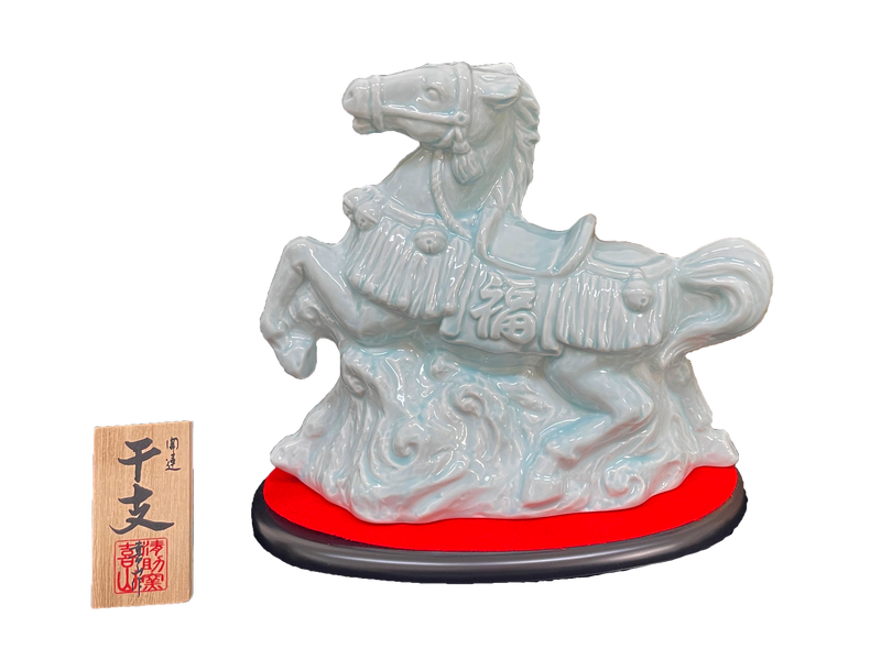 青磁の鞍(くら)は馬が乗馬されるためのもので、福を招く縁起物や出世、繁栄の象徴として使われています。